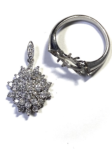 2021.12.14 お客様商品 【ビフォーアフター】リングの上の部分を残してペンダントにという依頼でした。<お客様の声>母が昔気に入ってしてた指輪。私はそのまま指輪としてはしないと思い、母が気に入ってたデザインなのでまたダイヤもたくさん入っているし、もったいないので何とか残したい思いでした。