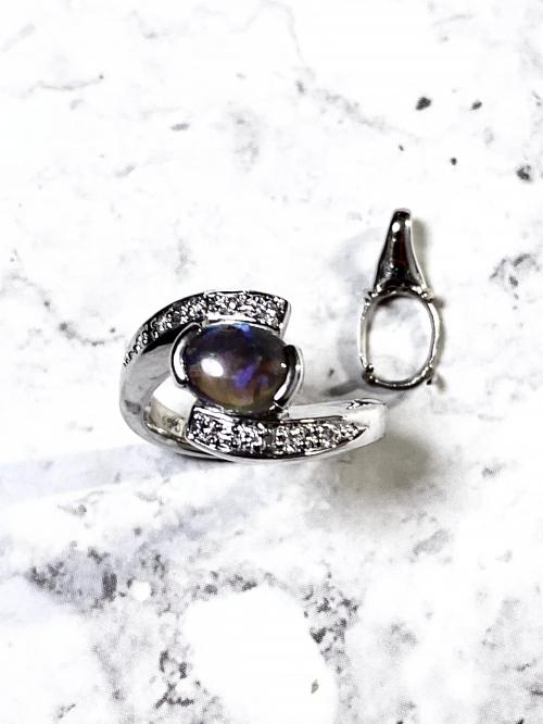 2022.01.19 お客様商品 【ビフォーアフター】ペンダントの中石オパールを外して指輪に。<お客様の声>もう少し存在感のあるものにしたかったので、指輪にと考えていました。モアさんのたくさんあるサンプル枠の中に気に入ったものがあったので決めました。写真とかから選ぶのではなく現物のシルバーサンプルから選んだので、イメージどうりでした。シルバーサンプルから選べたのは安心でした。