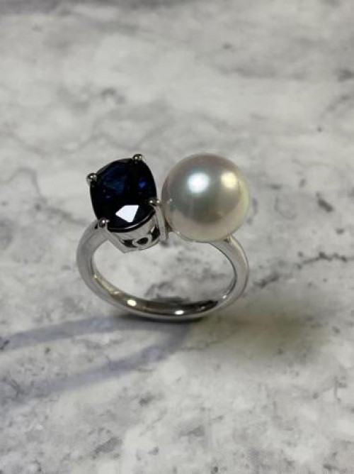 2021.07.27 お客様作品 【お客様の声】昔のサファイヤリングですが、サファイヤがとてもきれいだったので、インスタで見つけた気に入ったデザインがあったので、それをモアさんに見せて手造りでリングに。パールも以前から持っているものを使いました。イメージどうりで、安くて、早かったです。すごく気に入ってます。