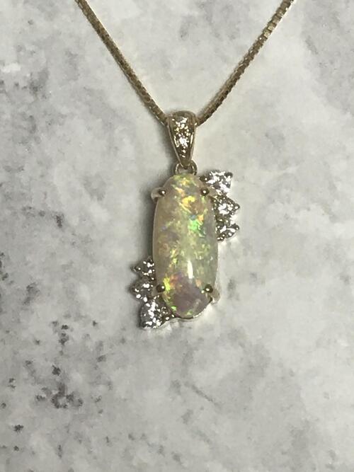 オパールの方はその時にお持ちになったメレダイヤを使って少し飾り、バチカン部分にはメレダイヤを彫止めすることをお勧めしました。全然ダイヤがないよりちょっとしたことで随分おしゃれな感じになりました。